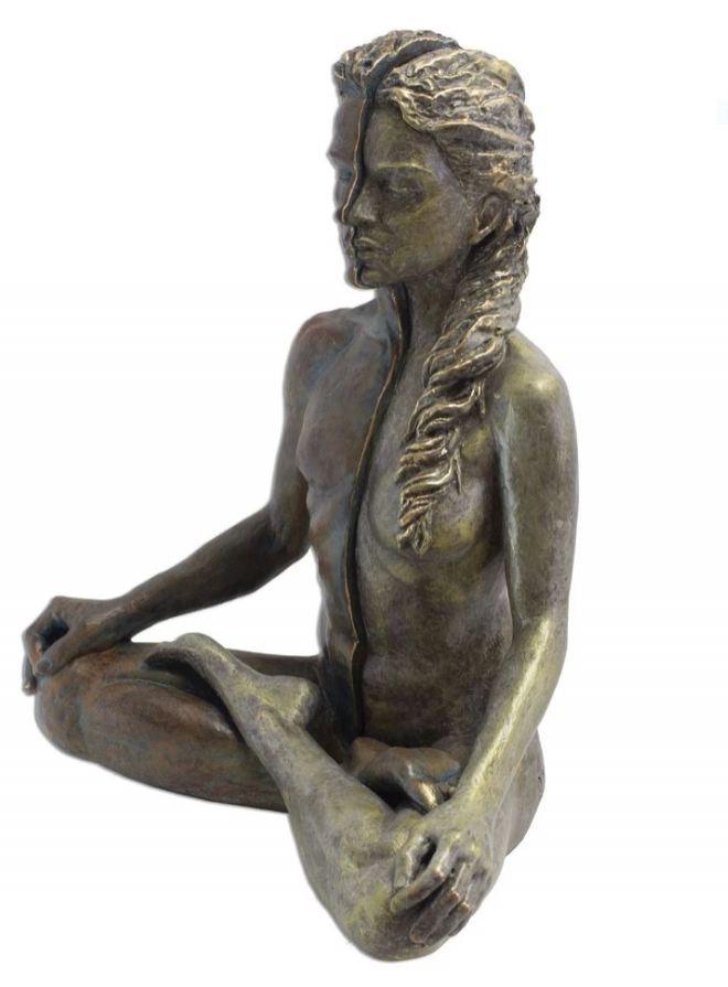 Original Escultura de dos cuerpos, una mujer y un hombre fusionados en postura de yoga, diseñada por la escultora A. Anglada y denominada Dualidad dentro de las novedades. Es una pieza con gran simbología. Está elaborada en barro con cocción a 1000 º para luego decorarla en laminado de bronce, en tonos óxidos . Haciendo una composición de gran elegancia y finura. Sus medidas son (27x13x33cm). Ideal para regalar a esa Pareja que comienza una nueva vida juntos, y para cualquier aniversario, compromiso, pedida de manos, bodas de plata, oro y para su decorar su hogar. Se lo podemos personalizar GRATIS grabando su texto en una placa y pegarla. También la podemos envolver para regalo Gratis. Portes Pagados en Península.