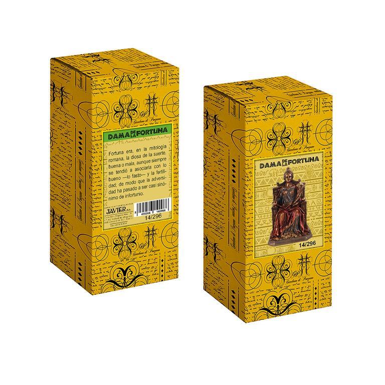 Figura representativa de la Diosa de la Fortuna de 25 cm sentada. Está realizada en resina, con un magnífico acabado en color bronce, que le aporta una gran elegancia. Está diosa de la mitología griega, conocida como Tique, ha llegado a nuestros días ocupando un lugar frente a la puerta de nuestra casa o negocio, para favorecer la abundancia y la suerte. Viene presentada en una caja de regalo, para un mejor transporte y presentación. En ella viene escrita su leyenda. Ideal para regalar a aquella persona que necesita una mejora en su vida. Portes Pagados en Península.