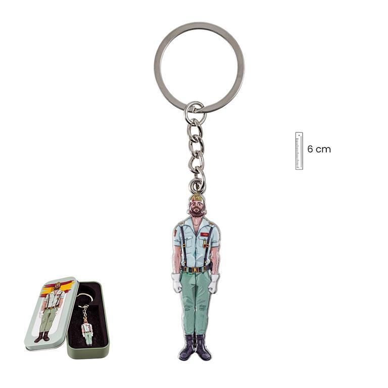 Llavero Legionario realizado en metal policromado. Trae caja de presentación metálica, decorada con imagen del legionario y su escudo, que le aporta gran elegancia para regalo.