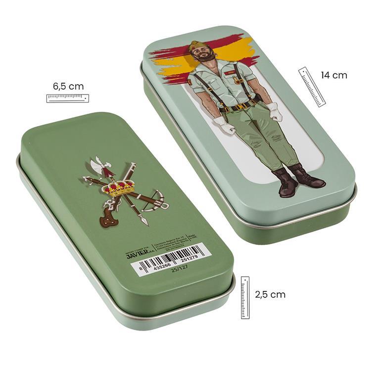 Original Llavero Legionario, realizado en metal policromado. Viene presentado en su caja metálica de regalo, decorada con la imagen del legionario y en la parte posterior el escudo de la legión, que le aporta una gran presentación. Ideal para regalar o disfrutar.