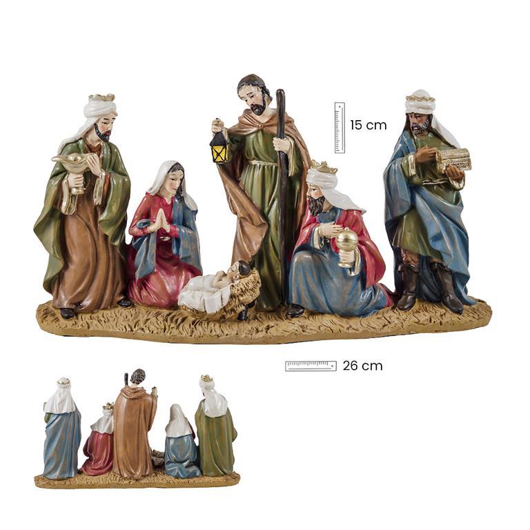 Emotivo Nacimiento realizado en resina policromada de 26x15 cm con Reyes, en el que se contempla la ternura, complicidad y amor hacia el Niño Jesús. Tiene gran originalidad formando un bonito conjunto. Con realismo y con detalles que lo hacen único. Ideal como regalo y como regalo especial.