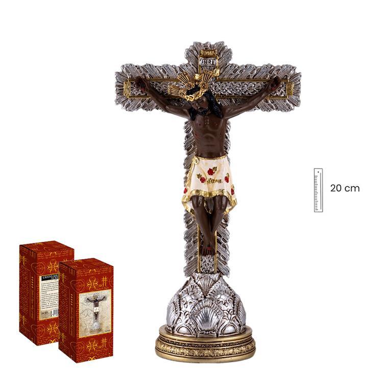 Clásico Crucifijo del Cristo Milagroso de Buga en sobremesa de 20 cm realizado en resina con gran realismo y detalles. Es un Cristo muy venerado en Colombia por ser muy milagroso.