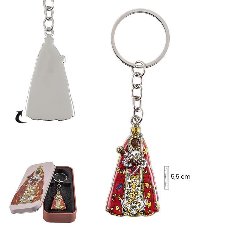 Original Llavero de la Virgen Candelaria. Realizado en metal plateado y decorado por delante. Viene presentado en una caja regalo metálica, decorada con la imagen de la Virgen por delante y un texto sobre la imagen en su reverso, que le aporta una magnífica presentación. Ideal para regalos y a todos los devotos de la Virgen.