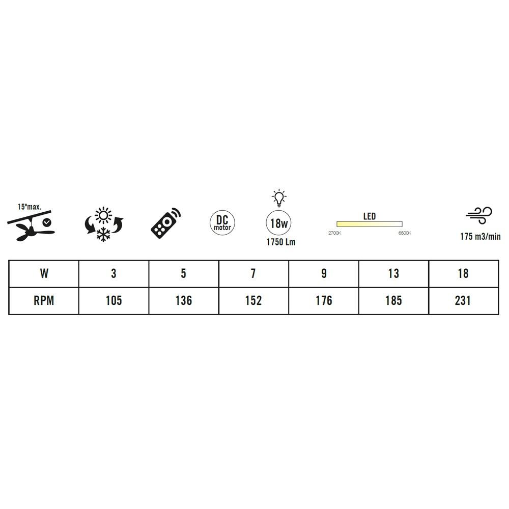 Ventilador Bali Motor DC de acero pintado en Blanco de 111 cm, mando a distancia, 3 aspas en color Blanco, Led de 18w 1750 Lm, con opción de elegir el tono de luz (2700 a 6500ºK) para conseguir el mejor ambiente para cada momento o necesidad, temporizador auto apagado, sistema verano/invierno, con un cuelgue de tan sólo 39 cm y con opción de cuelgue en techo con hasta 15º de inclinación. Este elegante ventilador tiene 6 velocidades con una potencia de flujo de aire 175m3/minuto por lo que es capaz de refrescar estancias a la vez de decorar e iluminar. Portes Pagados en Península.