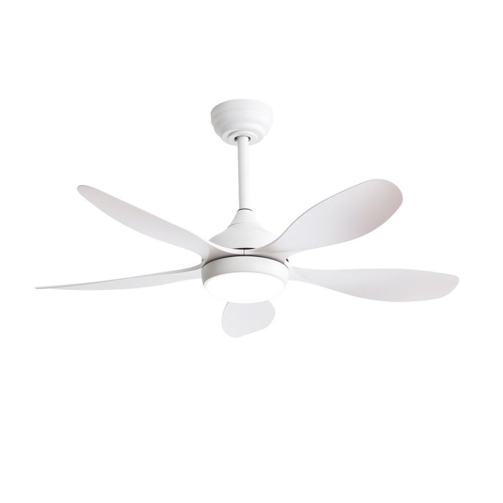 Ventilador Grecale Motor DC 108 cm decorado en blanco con 6 velocidades, mando a distancia con temporizador, 18w led con opción de elegir el tono de luz más adecuado para cada necesidad (2700-6500ºK), un cuelgue de tan sólo 36 cm, sistema Verano/Invierno y 5 aspas en blanco que hacen un conjunto mucho más armonioso. Un gran ventilador con muy buenas prestaciones ideal para cualquier zona de casa o negocio. Portes Pagados en Península.
