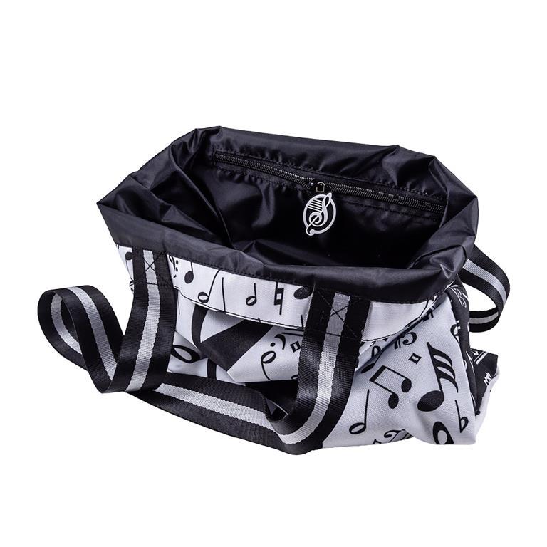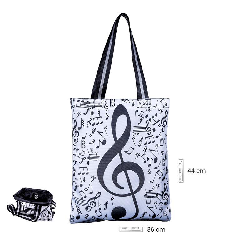 Bolsa Tote decorado con decoración musical. Elegantes e Ideales para regalar, o llevar en tu día a día. Tiene unas medidas de 44x36 cm y tiene bolsillo interior con cremallera. En nuestra tienda online, podrás encontrar una gran variedad de artículos con la misma decoración.
