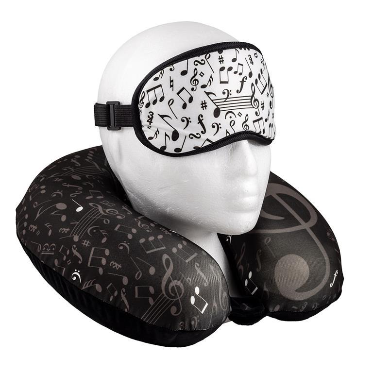 Juego cojín de viaje y antifaz decorado con motivos musicales. Elegantes y originales. Ideales para regalar, o llevar en tu viaje... En nuestra tienda online, podrás encontrar una gran variedad de artículos con la misma decoración.