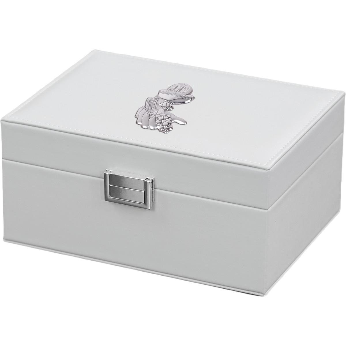 Joyero Comunión símil cuero blanco Plata laminada