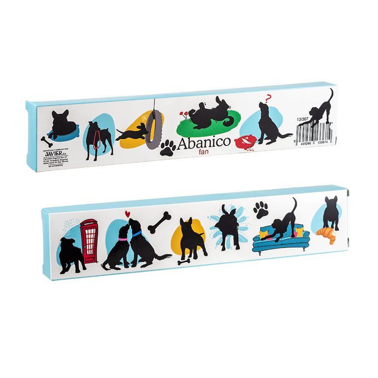 Elegante Abanico realizado en madera, decorado con Perros. Tiene sus filos en color celeste, armonizando con los tonos de la reproducción de muchos perros que decoran el abanico. Tiene una medida de 42 cm, ideal para refrescar gracias a sus dimensiones y también para lucir tan bonita decoración. Viene en su caja de regalo, decorada con los mismos motivos, que le aporta una magnífica presentación. Si lo deseas te lo podemos personalizar pegándole una chapita de aluminio, con el nombre que elijas grabado, en el lateral superior del abanico. Estupendo regalo, que te podemos envolver de manera gratuita si lo deseas. En nuestra tienda online, podrás escoger entre otros muchos modelos para que haga su mejor compra.