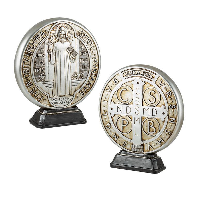 Medalla de San Benito, realizada con gran realismo en sus relieves en ambas caras. Representa a San Benito, fundador de la Orden Benedictina y patrono de Europa, además de protector contra el mal. En nuestra tienda online, podrás hacer tu mejor compra.