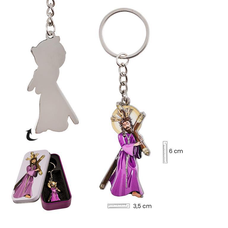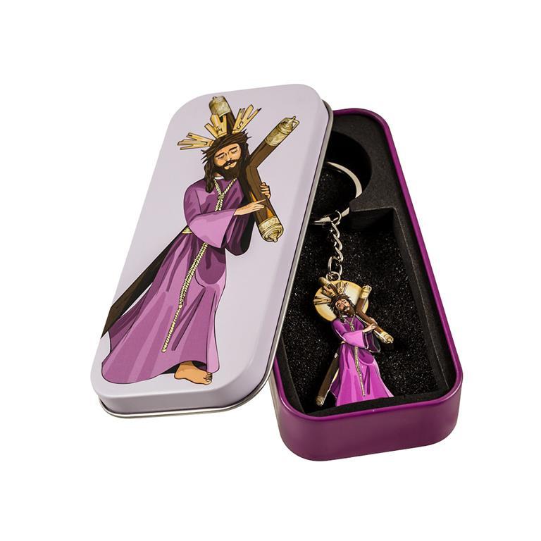 Original Llavero Cristo Gran Poder. Realizado en metal plateado y decorado por delante en color. Viene presentado en una caja regalo metálica, decorada con la imagen del Cristo por delante y un texto sobre la imagen en su reverso, que le aporta una magnífica presentación. Ideal para regalos y a todos los devotos del Cristo.