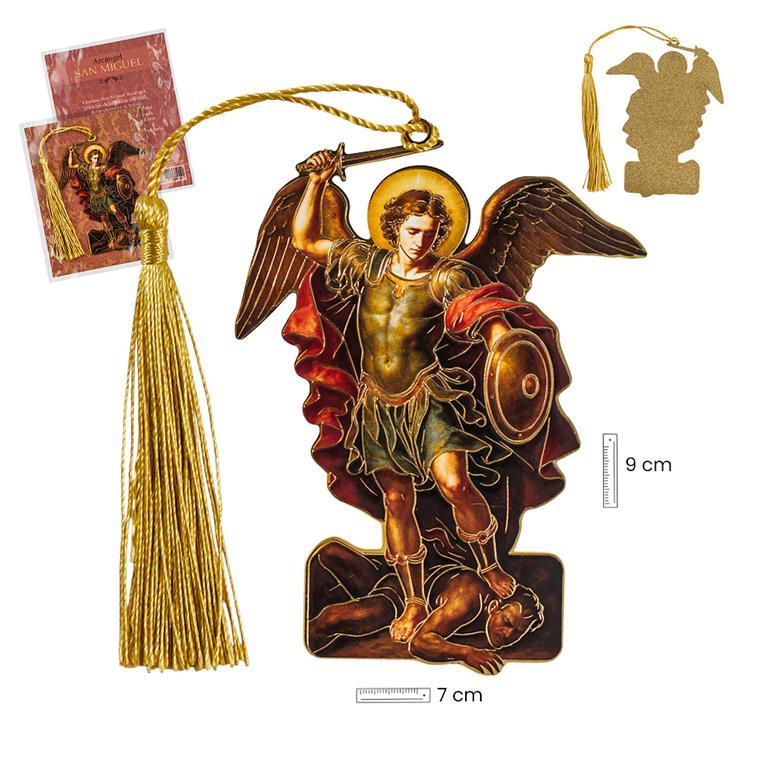 Marcapáginas de San Miguel decorado a color por delante. Viene presentado en un sobre plastificado, decorada con la imagen del Arcángel San Miguel por delante y un texto explicativo por detrás. Ideal como regalo y para todos los devotos de San Miguel.