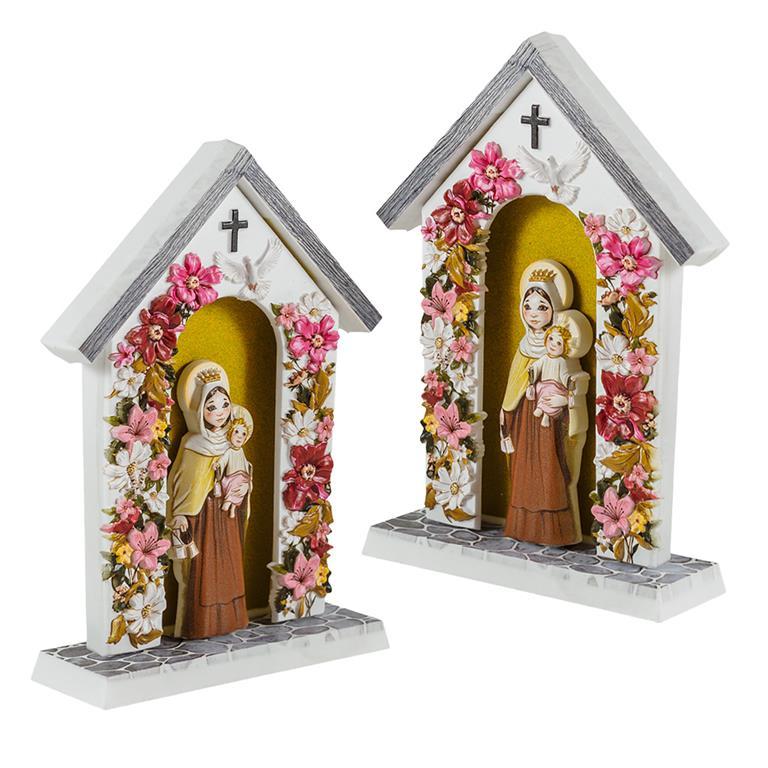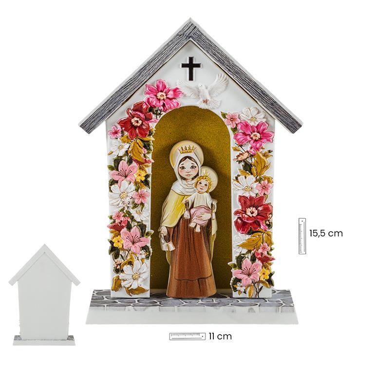 Virgen del Carmen Infantil dentro de una capilla de 15.5x11 cm llena de flores, alegría y color, con expresión infantil tanto Ella como el Niño Jesús. Con una expresión similar a las ilustraciones de Fano.Patrona de los marineros y de la armada española. Ideal como regalo para nuestros peques. En nuestra tienda online, podrás encontrar gran variedad de artículos, para que hagas tu mejor compra.